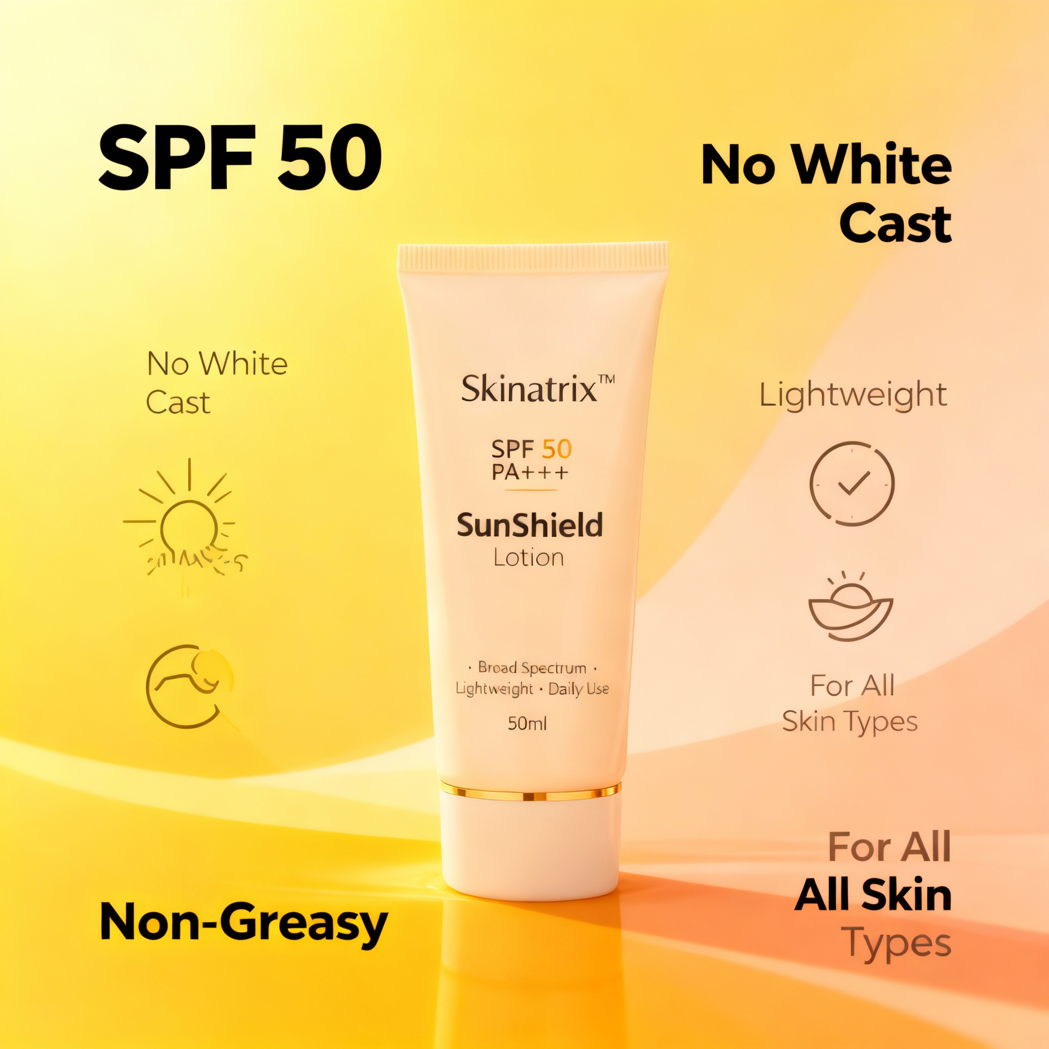 Skinatrix SunShield Lotion SPF 50 — No Cast Formula